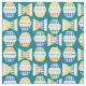 Add a vintage touch to your next sewing project with this fabric that features illustrations of retro style white glass kitchen mixing bowls illustrated with polka dots in royal blue, yellow, orange and green.