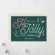 A bold, type-forward Xmas card, with of holly and pine needle embellishments.