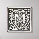 The Arts and Crafts style was a search for design that was beautiful, and in reaction against machine-production. Thus, the monogram M in our design, an arts and crafts inspired M monogram, is simple, rugged, and a purposeful rough-hewn quality, an almost mediaeval M quality, as if it were printed with a hand-made woodcut.