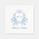 Enhance your wedding reception with these elegant Regency-inspired paper napkins. Featuring a beautifully detailed floral crest design in soft blue, customisable with your monogram, names, and wedding date, these napkins bring a touch of regencycore sophistication to your celebration.