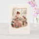 "The Daisy Chain" painting by artist Helen Jackson featuring pretty Victorian mother and daughter at a sunny window seat making a daisy chain together. Inside features editable Mother's Day greeting, text fields, optional daisy graphic and complementary background.