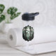 A vintage-inspired emblem featuring a majestic mountain range, towering trees, and a starry night sky. The design is framed within a circular border with intricate details, adding to the overall sense of elegance and sophistication.