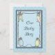 Newborn baby boy birth photo announcement in blue with vintage antique child's book illustration of four mice holding a banner. Personalise it with your infant's picture and birth details - Name, date, weight and length. Personalised birth announcement from Paper Expressions.