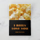 Vintage movie reel film in colours of amber, gold and black. For anyone who loves classic movies, vintage theatre, black and white movies or anything vintage. A funny romantic card featuring movie reel film and popcorn. Says "I reely love you".