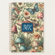 A pretty monogrammed planner vintage blue, mauve and tan butterflies, retro mushrooms and pretty flowers with a cottage core feeling.