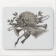 This mouse pad features a black and white image which captures a vintage etching of band instruments and sheets of music along with several small curious birds. This beautiful design depicts many natural elements along with the musical objects and is sure to appeal to any music lover.