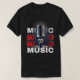 A stylish and bold T-shirt design featuring a retro microphone with the word "MUSIC" creatively highlighted in striking colours and typography. Perfect for music lovers, singers, and vintage enthusiasts, this design radiates passion for rhythm, melodies, and classic vibes.