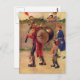 vintage historical soldier playing wind instrument beating drum on his back dressed in old fashioned uniform postcard
