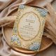 A romantic coastal wedding design inspired by classic seaside celebrations. Soft watercolor blue hydrangeas, seashells, rope details, and small nautical anchors frame an elegant scalloped label on a warm parchment background. The vintage illustration style blends botanical garden elegance with subtle nautical elements, creating a refined seaside aesthetic perfect for beach weddings, coastal venues, and ocean-inspired celebrations.