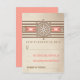coral nautical wedding RSVP card with brown stripes, couple's initials and old rustic boat wheel with rope.