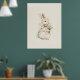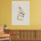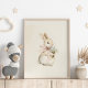 Vintage Neutral Cute Bunny with Flower Nursery Art Poster