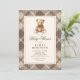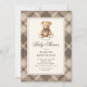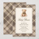 Vintage Neutral Plaid Teddy Bear Baby Shower Invitation