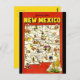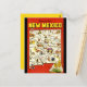 This postcard features a vintage illustration of a map of New Mexico.