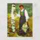 Vintage Norway, Lady with flowers in the birch wood