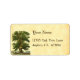 Custom address labels with optional blackletter and block letters in brown and vintage art of a giant, towering oak tree on a faux parchment background.