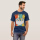 I give wanted to give this a 4 instead of a 5 because these Basic DARK T0shirts run unexpectedly SLIM or Narrow. Which is great if you do not have a potbelly, but I have a paunch. It isn't the shirt's fault that I've got a beer belly. The design and shirt itself is a quality cotton shirt. The color is more of a deep purple, but still a very pretty color. The Basic DARK T-shirts run a bit SLIMMER than the Basic Ts. The neck is a fraction narrower (or seems to be narrower) also. I'm a paunchy middle-aged woman and my neck is 12 inches (31cm) thick and the neckline fell about the same as in the photo of the man, and I had the desire to tug it a bit. So if you're a thick necked man or like loose shirts, be aware these are slimmer shirts. Once I get rid of my lockdown paunch it'll look great. The shirt washed well in cold water with no apparent bleeding. We don't have a dryer, so it hung dry. Did not shrink. Love the colors and the design. The design looks smaller on my shirt than it does on the model on-line. But still, it looks good on the shirt. The printing looks as it does on the model, just the size seems fractionally smaller. Washed garment in cold water, hung dry and design appeared unaffected.