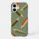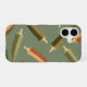Retro pattern featuring stylized elongated okra on a sage green background.