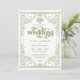 A whimsical wedding invitation adorned with vintage olive green tones and an antique-style frame.