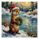 A charming vintage Christmas painting featuring an otter holding a holiday wreath beside a frozen river. This nostalgic winter scene adds warmth and woodland magic to any holiday décor or greeting card.