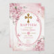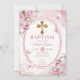 Pink Butterfly Girl Baptism Gold Cross Flowers Invitation
