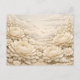 A serene landscape postcard featuring intricately layered paper-style flowers in soft beige tones. With delicate blossoms, dreamy mountains, and drifting petals, this vintage-inspired design evokes elegance and tranquility.
