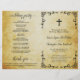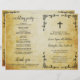 This wedding program is simple yet beautiful. Designed for a Catholic ceremony it features a vintage design with a faux parchment background, lacy scrip calligraphy, a crucifix or cross, and elegant scrolls in the corners. The inside has extended space for all of the details on the ceremony, while the back has information on the wedding party along with a short thank you note. Beautiful way to welcome your guests and make it easy for them to follow along with the ceremony.