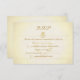 A vintage, distressed parchment paper style background forms the basis of this stylish Wedding RSVP Response card template. Decorative emblems in shades of gold complete this fully customisable design.