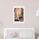 Poster is shown with a vintage art print of the beautiful streets of Paris.
