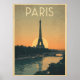 Bring the romance of the City of Light into your home with this vintage-inspired travel poster. The design features the iconic Eiffel Tower standing tall against a warm sunset, with the tranquil Seine River and its bridges in the foreground. The warm, retro colour palette and distressed texture evoke a sense of timeless elegance and classic Parisian charm.