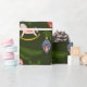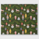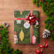 This vintage gift wrap design brings all those good nostalgia vibes from days gone by. The gift wrap features a dark green background with evergreen tree branches surrounded by vintage glass ornaments in pastel pinks and blues with a hint of gold.