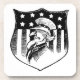 Vintage illustration Victorian black and white 4th of July patriotic image featuring classic symbols of patriotism and American freedom. Uncle Sam on a USA flag, the stars and stripes, shaped like a shield. Show your pride for the United States of America and celebrate patriotic holidays of Memorial Day, Veteran's Day and Independence Day.