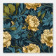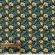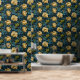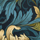 Elegant vintage William Morris-inspired wallpaper featuring illustrations of peach and cream flowers and with teal and green leaves.