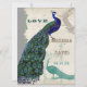 There is a touch of whimsy and fun in this design featuring two vintage peacocks, one in full intense colours of cobalt, peacock,and aqua blue with purple and green, the other is a pen and ink drawing in peacock blue. You have your choice of background colours, shown here in peacock or teal blue. During customisation, simply select "edit" and in the drop down menu select background. You can pick any colour on the chart or put in the hex# of any colour you would like (in the box at the bottom right corner). We would also be delighted to help your out if you would like. On the reverse side is your Wedding invitation information. YOU MIGHT ALSO ENJOY:All items available in any colour you desire, just email us and we'll be happy to help! COMPLETE COLLECTION AT: