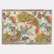 Vintage Peacock and poppies illustrations Postcard. Vintage colourful pattern with blue peacocks and red and purple poppies.