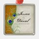 This elegant and sophisticated Christmas Ornament can be customised for a special anniversary or to celebrate a couple's first Christmas. The design blends the best of tradition and the freshness of the contemporary. Mixing Vintage art elements and contemporary watercolor art work hand painted by Audrey Jeanne Roberts gives a beautiful and timeless quality to this invitation. A stately Peacock rest upon elegant etched swirls and looking towards a very subtle hand painted damask with black behind it. Also available in a custom colour version where you can put any colour where the blue is now. Every product shown can be created in any colour you wish. YOU MIGHT ALSO ENJOY: WEDDING INVITATIONS: