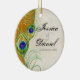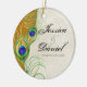 This elegant and sophisticated Christmas Ornament can be customised for a special anniversary or to celebrate a couple's first Christmas. The design blends the best of tradition and the freshness of the contemporary. Mixing Vintage art elements and contemporary watercolor art work hand painted by Audrey Jeanne Roberts gives a beautiful and timeless quality to this invitation. A stately Peacock rest upon elegant etched swirls and looking towards a very subtle hand painted damask with black behind it. Also available in a custom colour version where you can put any colour where the blue is now. Every product shown can be created in any colour you wish. YOU MIGHT ALSO ENJOY: WEDDING INVITATIONS: