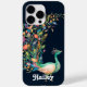 Vintage Peacock Name iPhone / iPad case on black background. Personalise with your name.
