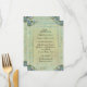 A vintage wedding dinner menu with peacock feathers and a delicate calligraphy border. This invitation is part of a complete set.