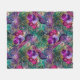 Elegant fleece blanket designed with vintage purple peacocks patterned on a teal background.