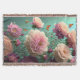 Vintage peonies in pink and burgundy throw blanket