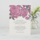 This wedding invitation features off-white background with painted vintage pink peony blossoms.