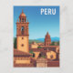 Vintage Peru Cityscape Travel Poster Postcard