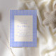 This sweet baby shower layout features a timeless blue gingham border paired with soft cream and playful modern type. The design feels classic and cosy, perfect for celebrating a mum-to-be in spring, summer, or fall. Ideal for traditional or gender-specific showers with a fresh preppy twist.