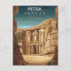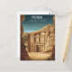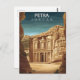 Step back in time to the ancient world with this breathtaking Petra Jordan travel postcard! This captivating illustrated design features the world-renowned Al-Khazneh (The Treasury), the most iconic structure of the 'Rose City.' The illustration masterfully captures the dramatic scale of the Nabataean ruins, carved into the stunning sandstone cliffs of the Middle East.