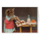 A vintage tinted photograph featuring a cat in a dress and apron baking gingerbread man cookies in the kitchen. American photographer Harry Whittier Frees (1879-1953) was famous for dressing animals in clothing and posing them in human situations then photographing them. Some of his photos had captions, but most did not. This card is blank inside for your own message.