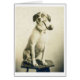 A vintage photograph of a dog sitting on a small table, posing for his portrait with a pipe in his mouth. The card is blank inside for your own message.