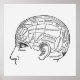Vintage Phrenology Chart Neurology illustrated Poster, The reproduction has been digitally restored and enhanced.