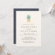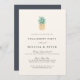 Understated and elegant, our Vintage Pineapple engagement party invitation features a pineapple illustration in golden yellow and vibrant tropical green, with your engagement party details in traditional block and script lettering. Smoky charcoal grey printing on a warm off white background provides a formal, elegant finish. Cards reverse to solid smoky navy blue. Featuring the pineapple, the beloved symbol of both hospitality and island style, this invitation is perfect for southern, tropical, Hawaii or Caribbean themed engagement parties. We love this style with the Traditional Laid paper for a truly upscale look and feel.