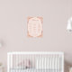The background is blush pink. It has a vintage pink ornate frame with faux rose gold decorations in the corners. The word Welcome and the names are written in an elegant calligraphic script, the rest in caps. All text can be personalised and has a pinkish colour similar to the frame.