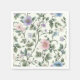 This elegant floral pattern features soft pink, lavender, and blue flowers blooming along intertwining green vines, set against a crisp white background. The minimalist, vintage-inspired composition exudes a sense of timeless charm and tranquility.
